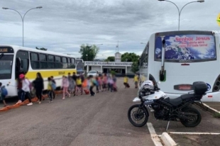 Após a ação policial, as crianças foram embarcadas em ônibus escolares regulares e levadas aos seus destinos.
